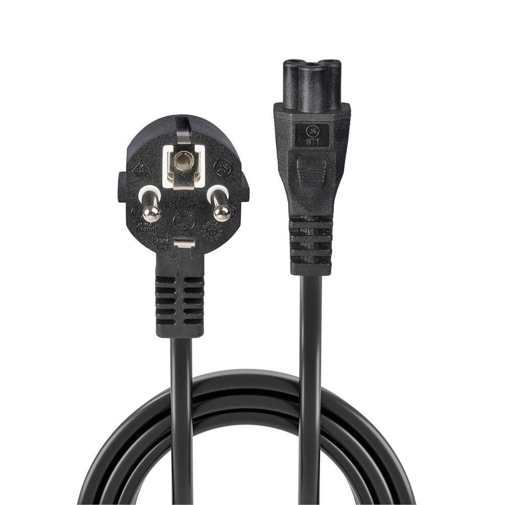 Cablu alimentare Lindy, conector A: Schuko, conector B: IEC C5C5, lungime cablu 2m, material PVC si PBT, material conductor: cupru, dimensiuni A: 36.5x71x36.5mm (1.44×2.8×1.44in), B: 22.8x64x15mm (0.9×2.52×0.59in), negru