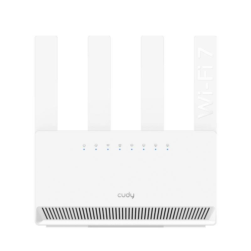 CUDY Router BE3600 Gigabit Dual Band Wi-Fi 7, Chipset Broadcom, standard 802.11be/ax/ac/a/b/g/n, 2882Mbps la 5GHz + 688Mbps la 2.4GHz, 4 x porturi 10/100/1000Mbps, 4 x 5dBi antene fixe, WiFi router/AP/ Repeater/WISP Mode, PPTP/L2TP/OpenVPN/WireGuard, MLO, MU-MIMO, Guest network, WPS, DDNS, IPv6, IPTV, WOL, WPA3, TR069/TR098/TR111/TR181, Cudy APP