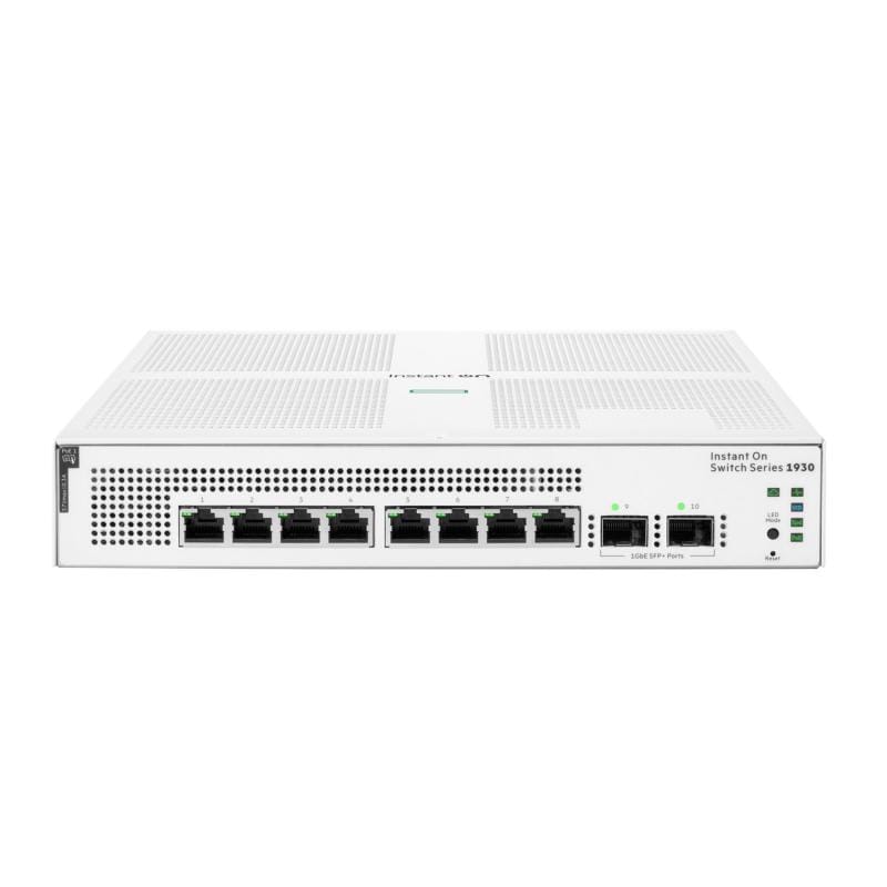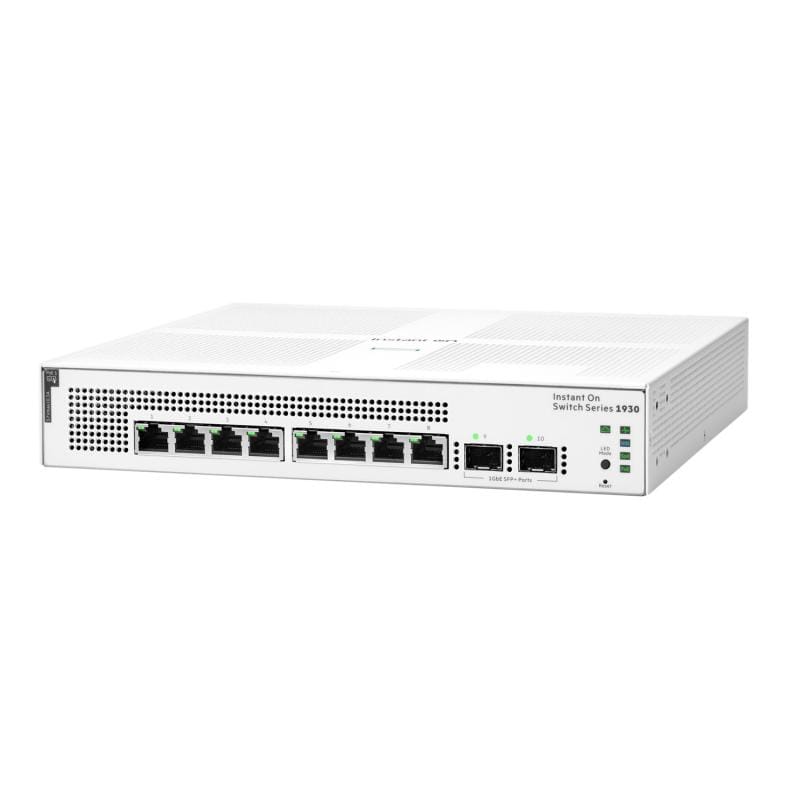 The HPE Networking Instant On Switch 1930 series is designed for small and growing businesses that require enhanced performance to support bandwidth-demanding applications. The 1930 switch series seamlessly integrates with existing Instant On indoor/outdoor access points and can be centrally managed with the Instant On mobile app onsite or remotely. These cloud-managed layer 2+ Ethernet switches consist of 8-, 24-, and 48-port Class 4 PoE (i.e. PoE+) and non-PoE Gigabit Ethernet models, with 1 G SFP slots on 8-port model and 1 G/10 G SFP+ slots on 24-/48 G models for fiber connectivity.
