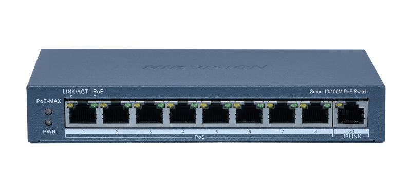 Switch 8 porturi POE Hikvision DS-3E1309P-EI(B), Smart Managed, 8 ×