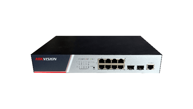 Switch Hikvision DS-3E2510P(B), Switching Capacity 336 Gbps, 8 Gigabit Poe electrical ports and 2 Gigabit / 100M SFP optical ports, Address Table 8 K, Support binding of IP, MAC, port and VLAN, dimensiuni: 280 mm × 44 mm × 180 mm, temperatura de functionare: -10°C to 50°C, greutate:1.2Kg